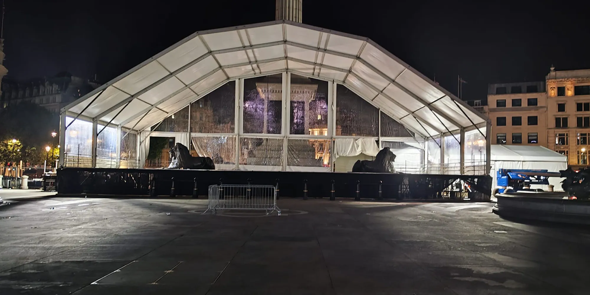 Because Trafalgar Square is a busy public space, we had limited time to complete the build. Our crew worked through Saturday night and into Sunday morning, finishing the sub-structure in just under eight hours. This rapid turnaround allowed the crane to arrive on schedule and position the main stage flooring without delay, preventing disruptions to both the event’s rehearsal schedule and the flow of visitors to the Square.